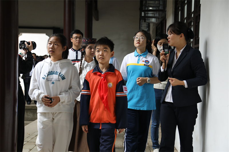 讲解员向“新时代好少年”代表介绍半学斋。周胜武 摄