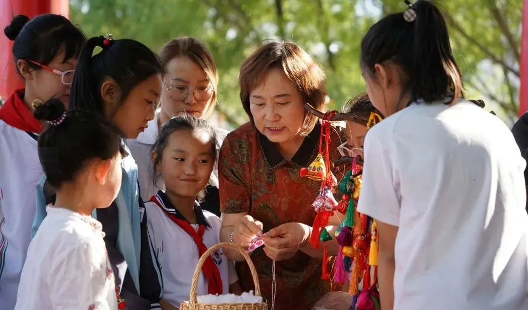 岢岚县青少年学习刺绣,传承传统文化。忻州市文明办供图