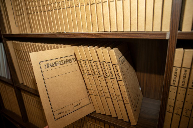7月25日,湖北省宜都市陆城街道尾笔村家庭文明诚信档案。新华网 钟奕 摄