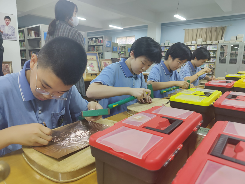 10月13日,石家庄市第四十中学的同学们正在体验传统非遗制作。新华网 李然 摄