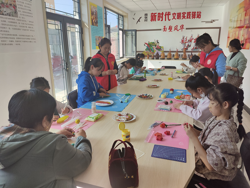 10月14日,志愿者在南张村新时代文明实践驿站非遗传承室传授孩子非遗技艺。新华网 李然 摄