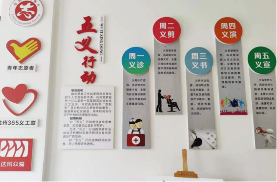 达州市达川区杨柳街道杨柳社区新时代文明实践站内的“五义行动”介绍(11月3日摄)。新华网 李然 摄