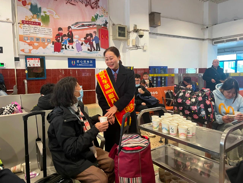 广铁集团娄底车站开展为旅客送姜茶的“千杯茶”服务活动。