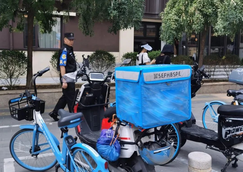 2024年6月7日下午,正是大院门口人流、车流高峰期,张力东像往常一样在片区巡查、疏导。“我突然发现路边一辆共享单车的车筐里放着一个黑色的背包,周围却没有人。我就一边看着包一边等失主回来取。”张力东回忆道。