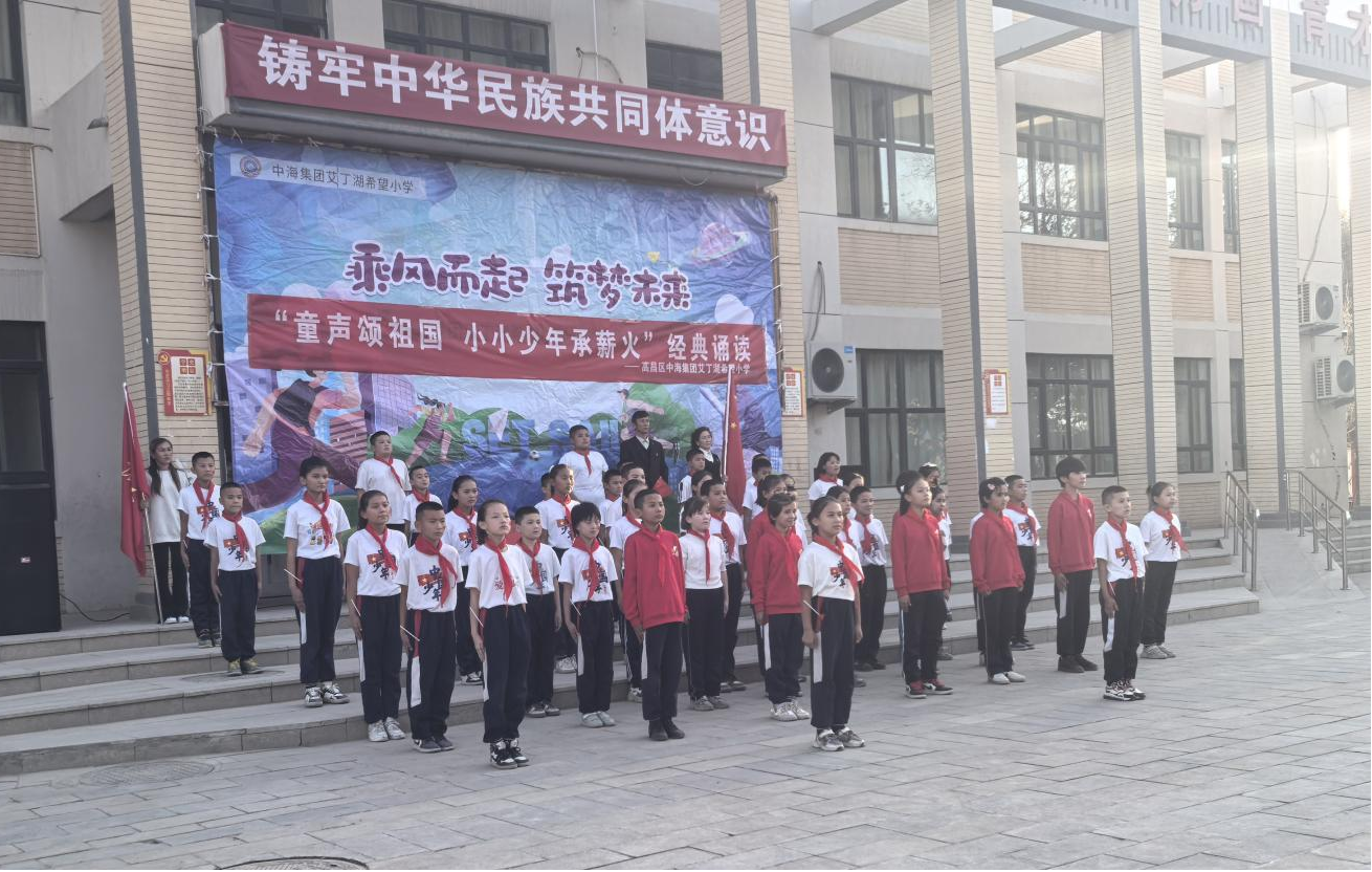 “要勇敢,要向上……”近日,在海拔最低点的艾丁湖畔,吐鲁番市高昌区艾丁湖希望小学正举办“童声颂祖国”小小少年承薪火经典诵读活动,学生们用清脆而坚定的童声诠释着对经典的解读。
