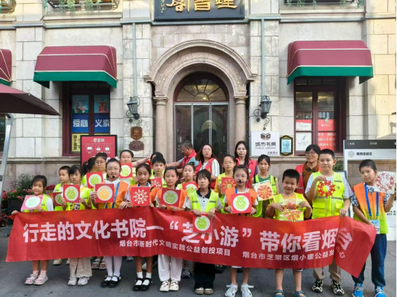青少年志愿讲解员“芝小游”为游客讲好烟台故事,倡导文明旅游。烟台市文明办供图